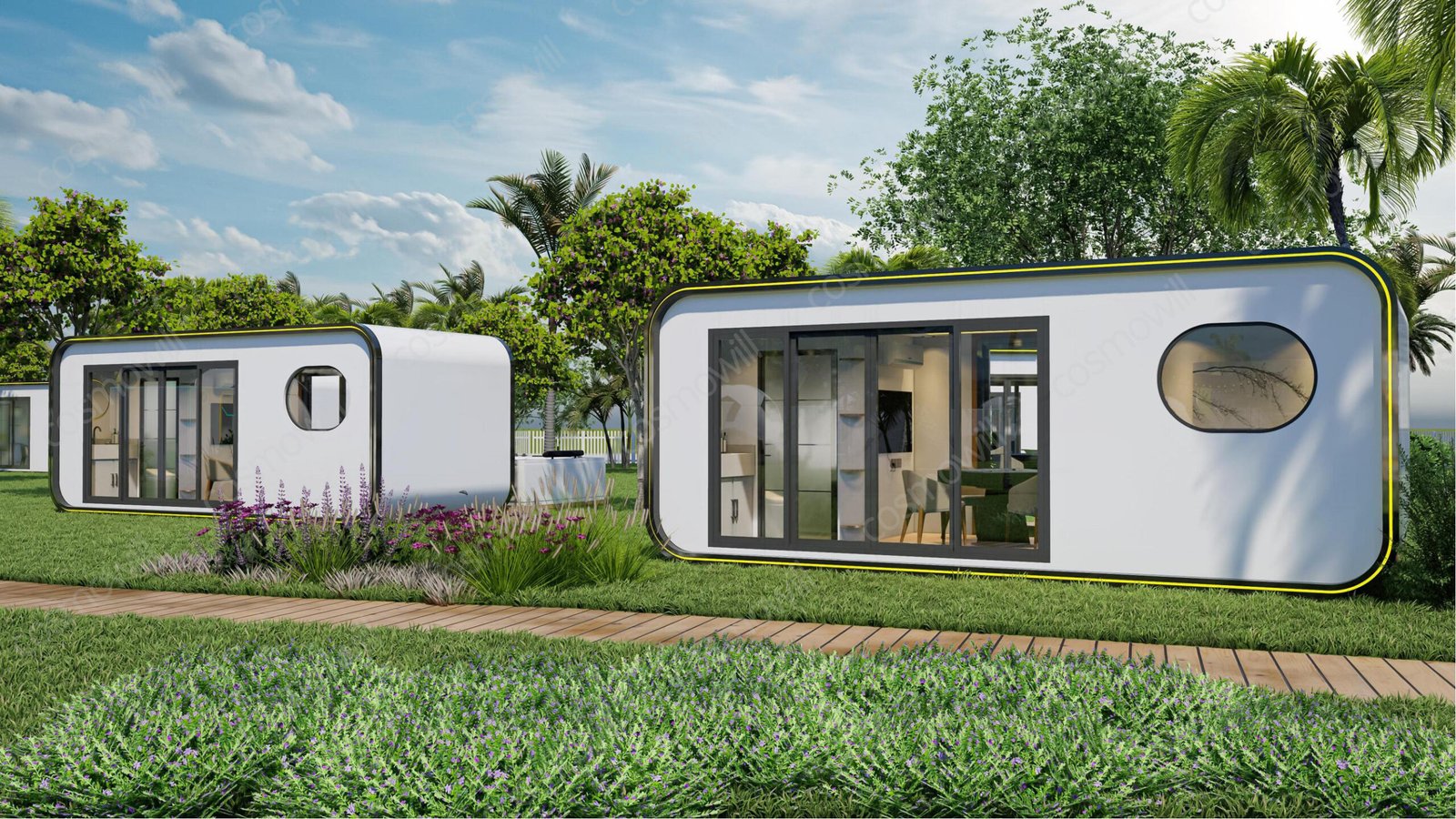 - Model C: L11.5m × W3m × H2.45m | 26.5㎡ | Sleeps 4–6