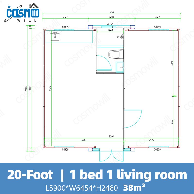 The CM-20 Foldable Home offers 38.07㎡ of stylish, efficient space, perfect for those exploring tinny homes, capsule homes, prefab container homes, or cheap movable mobile homes for sale. Built with a galvanized steel frame, it expands from 5.9m x 2.2m to a spacious 5.9m x 6.45m, weighing approx. 2.7 tons—ideal for mobility and compact delivery.