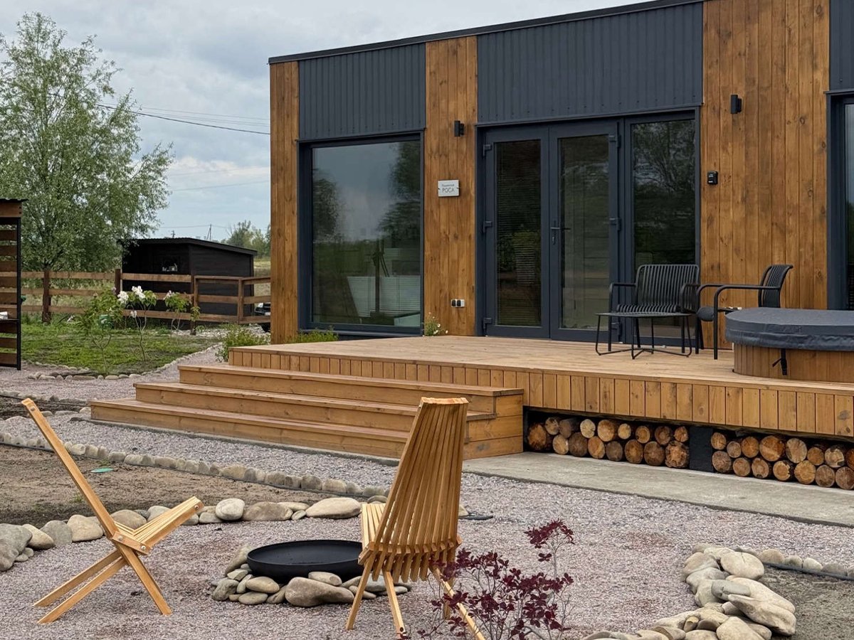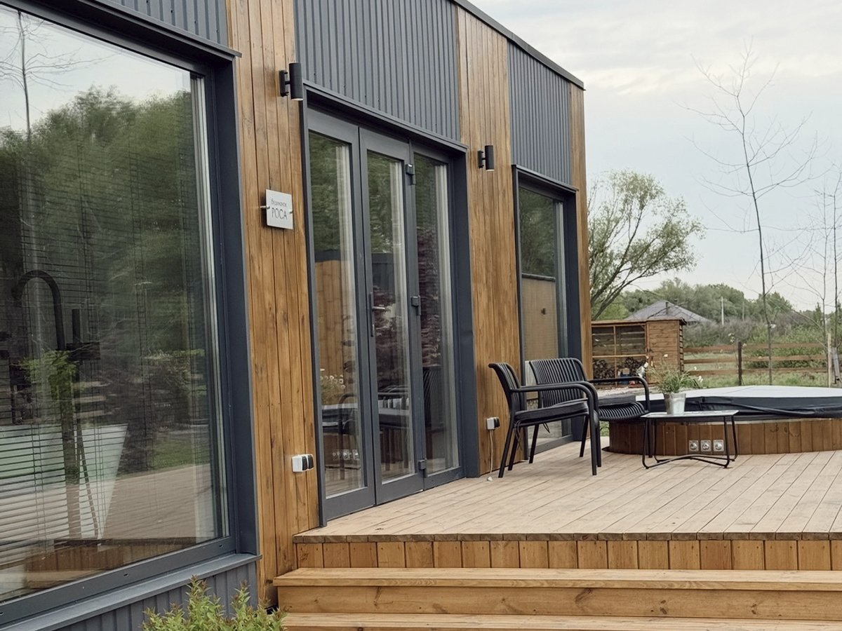 - Exterior & Roof: Ventilated façade (plank, profiled sheet, or click-fold finish) paired with a durable metal-profile roof or click seam.