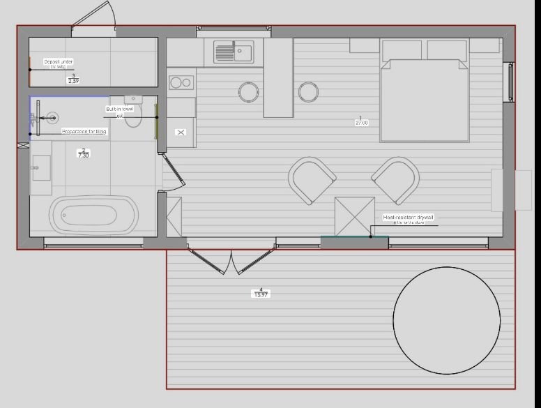 With a 45 m² floor area (4.5 × 10 m), the N7 is thoughtfully engineered to last. Its 150×50 mm coniferous wood frame for walls and roof, along with a 100×150 mm floor frame, are all treated with fire-resistant bioprotection. Therefore, the structure offers long-term safety and reliability.