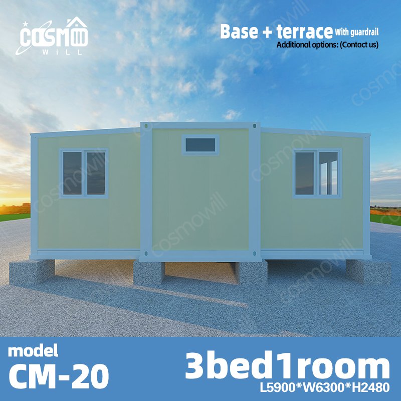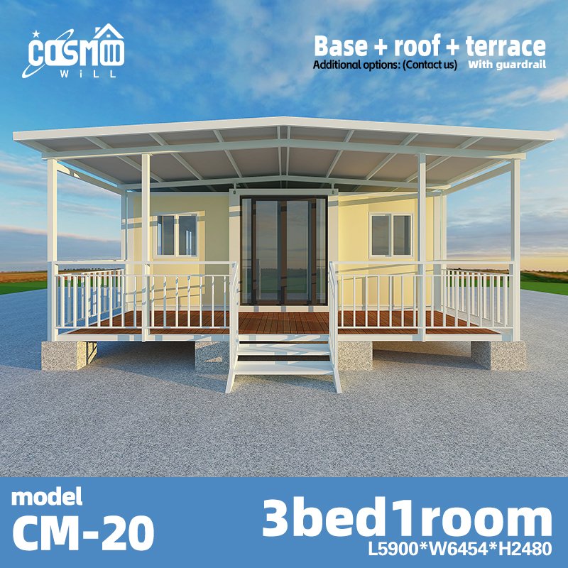 Optional add-ons like stairs, terraces, and base frames offer customization for multi-family homes, prefabricated container homes, or vacation rentals. Whether you’re looking for cheap houses under $50k, homes under 200k, or prefabricated homes for sale in Texas, the CM-20 delivers comfort, durability, and versatility—perfect for rural retreats, backyard studios, or mobile living. Global delivery included.